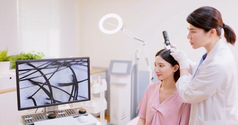 療程開始前會透過頭皮分析機進行檢查,了解頭皮油脂分泌、毛囊健康及髮量分布,作為後續療程的依據。