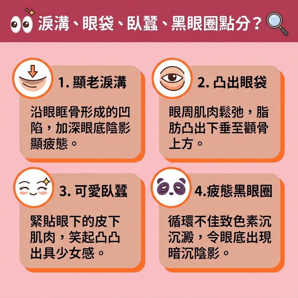 淚溝、眼袋、臥蠶、黑眼圈是甚麼?