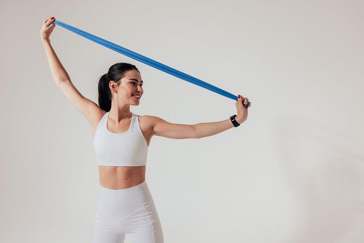 許多人誤以為橡筋帶越硬、越難拉,效果就一定越好。事實上,過大的阻力會導致身體出現補償動作,例如用腰力代替臂力。低阻力、高次數的訓練模式反而更能刻畫肌肉線條,幫助緊致肌膚。